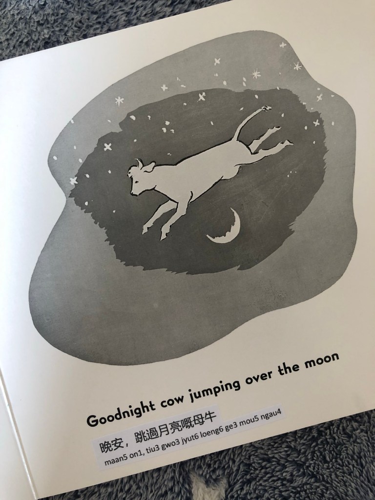 AJ still isn’t sleeping any better but we’ve established a good bedtime routine with Goodnight Moon as a cornerstone. Because I’ve been reading it every night to him in Cantonese, I reckon I could probably recite it from memory.