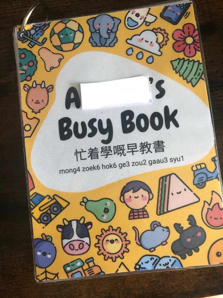 I am so excited to finally showcase what I’ve been working on these last few weeks behind the scenes- my Cantonese/Jyutping busy book! I’ve been planning on making a busy book for AJ for a while and then inspiration struck, why don’t I make one in Cantonese? From what I can see, there are hardly any busy books available in Standard Written Chinese, never mind in written Cantonese, and I think that’s a real shame.