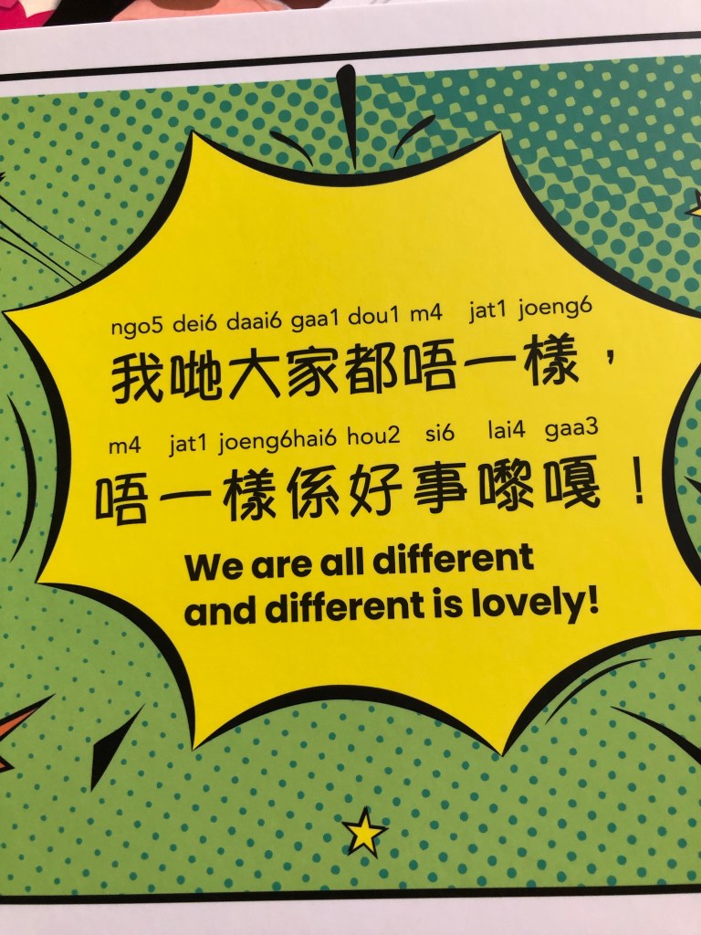 - 唔一樣係好事 m4 jat1 joeng6 hai6 hou2 si6 = It’s good to be different