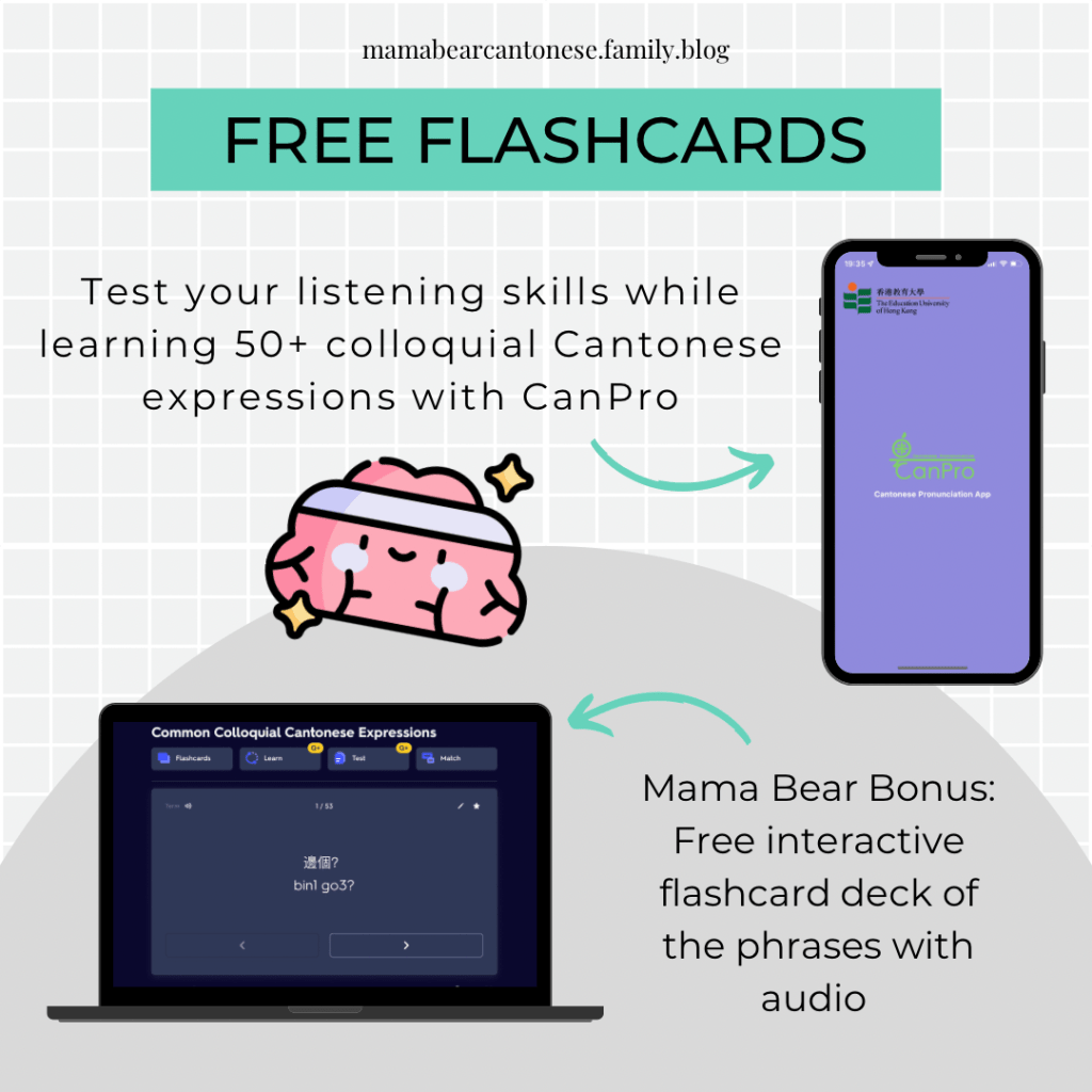 One thing I did find useful from the app was revisiting those small, everyday phrases that pepper conversations. It took me back to my childhood and it’s also helped my listening comprehension when I watch tv shows in Cantonese. I’ve added all of these expressions to a Quizlet deck with audio if you also want to revisit these common phrases. If you don’t know what Quizlet is, it’s a free website and app where you can make or find sets of interactive flashcards. You can find all the Quizlet decks I’ve created here.