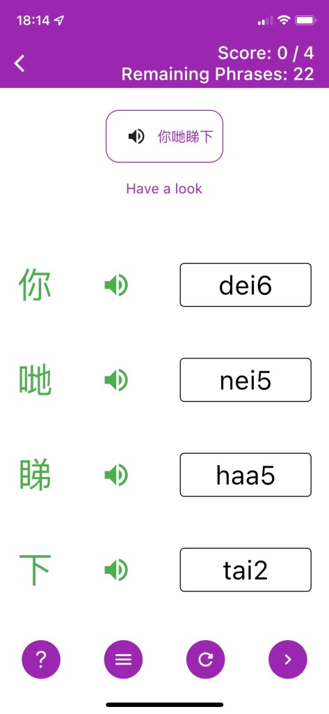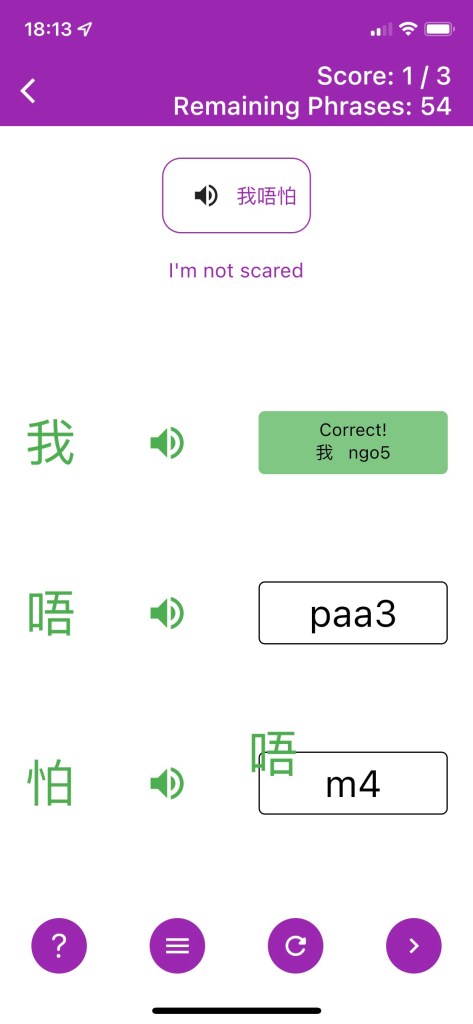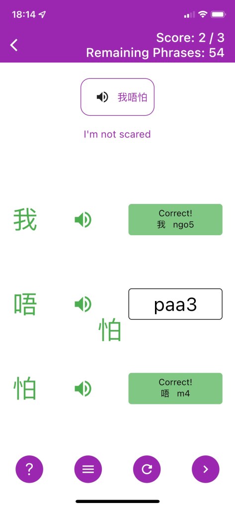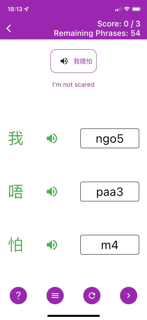 No spaced repetition or option to review previous phrases- The app’s sole purpose is to improve your listening comprehension. There is no algorithm for the learner to repeat weaker phrases, which is a missed opportunity for users to up their Cantonese vocabulary.