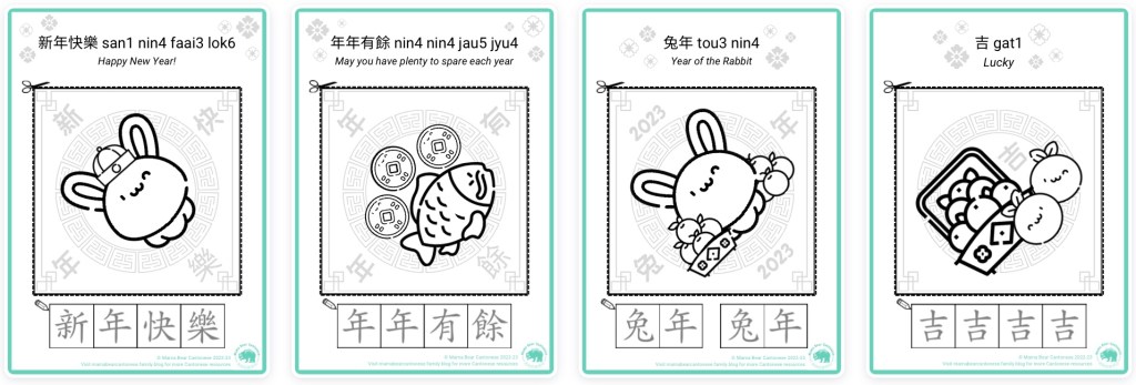 I hope you enjoyed my printables. Please send me photos of your little ones’ creations to mamabearcantonese@gmail.com as I would love to see their work. 恭喜發財 gung1 hei2 faat3 coi4!