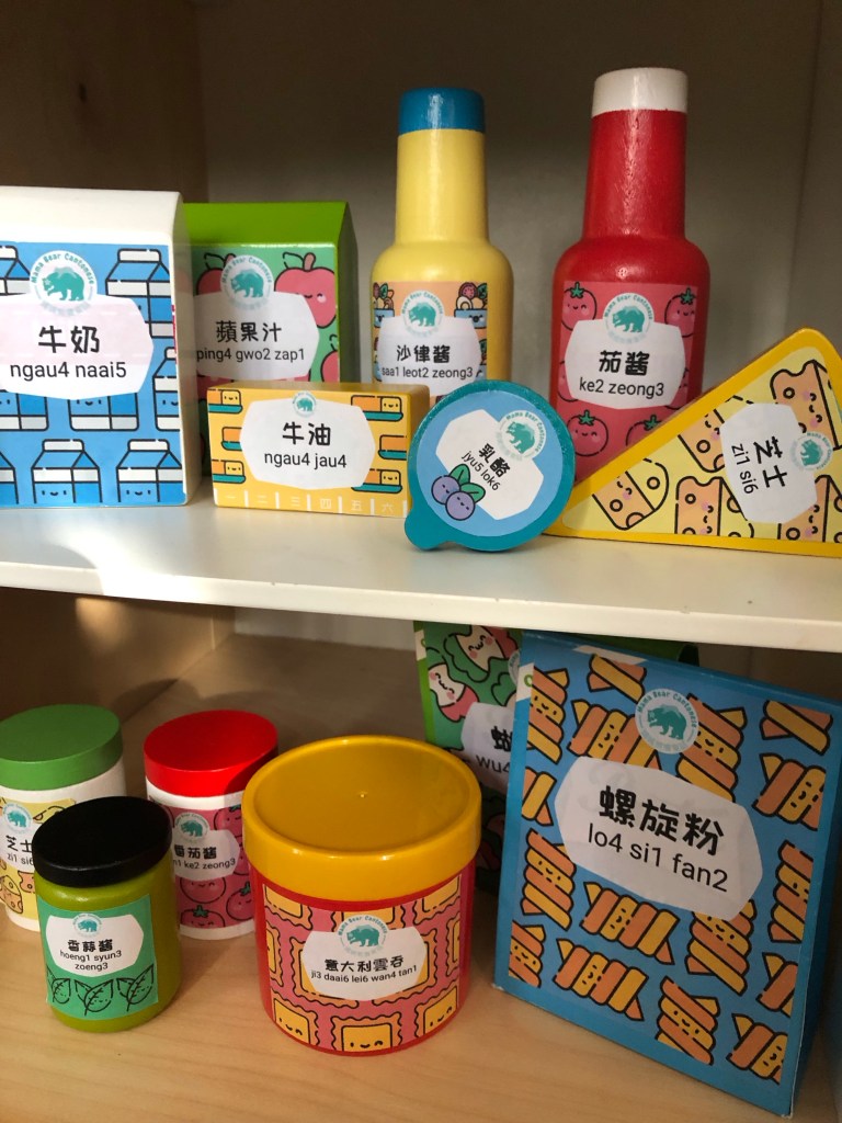 Cooking has deep roots in AJ’s family. His maternal great grandad was a chef as well as his paternal grandad. Food, especially Cantonese cuisine, plays a huge part in my family’s identity and heritage. This is why I was delighted to fine one of AJ’s favourite things to play with is his toy kitchen. I’ve created colourful Cantonese labels for his play food to provide even more exposure to Cantonese at home. Here’s how you can make them for your littles…