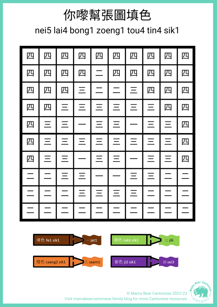 P.S. You can support Mama Bear Cantonese on Patreon. From £1 a month, you can access editable versions of all my resources as well as bonus content. Your generosity will help cover this site’s running costs. 多謝 do1 ze6!