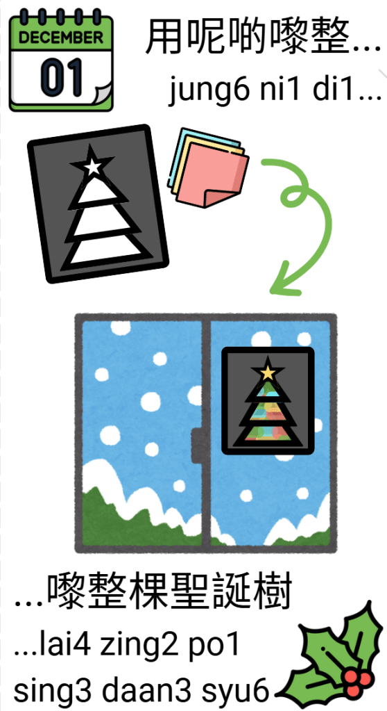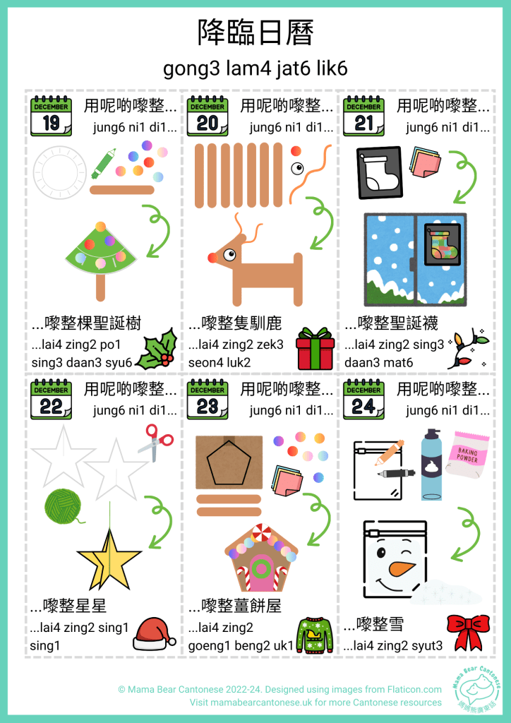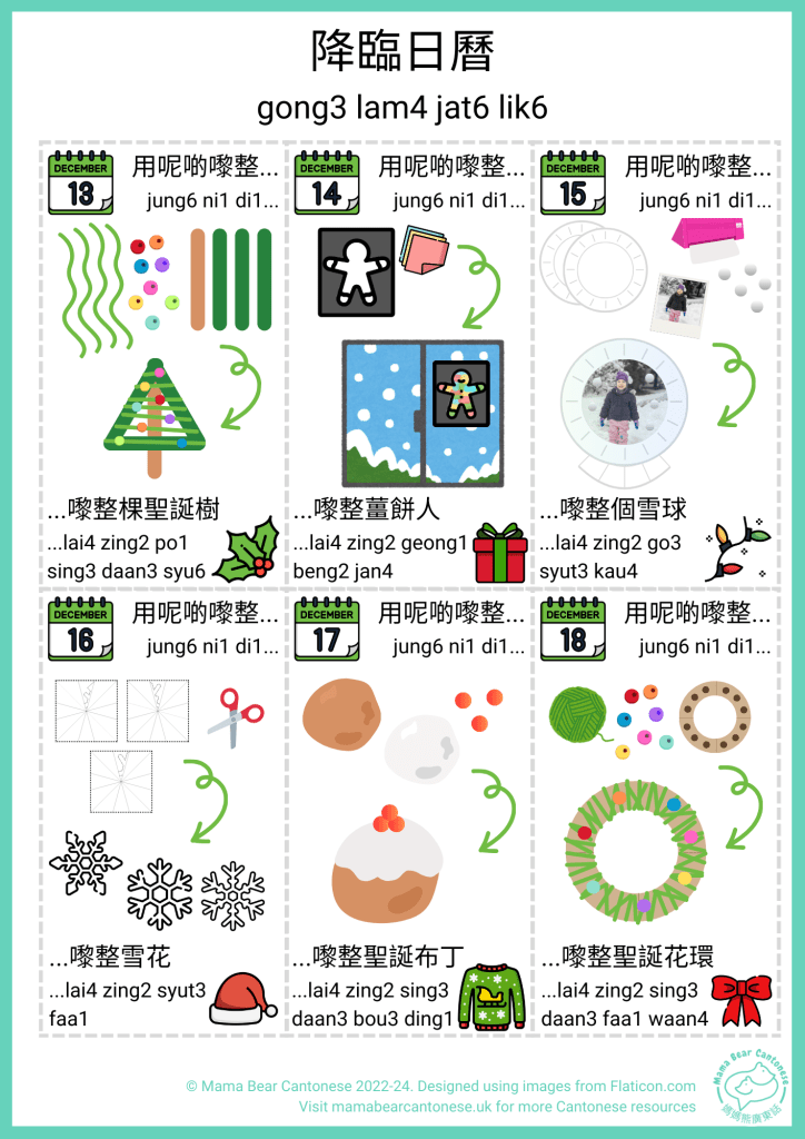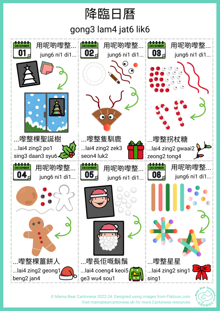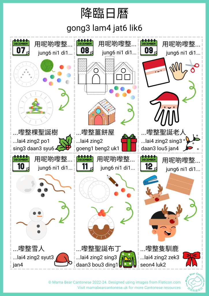 It’s nearly December and I have a Cantonese advent calendar to share that has a different Christmas craft each day. AJ is too young for a traditional chocolate advent calendar so I wanted to make something to help get him (and me) into the Christmas spirit!