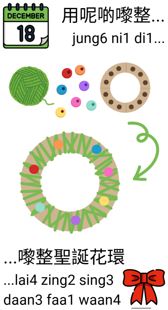Activity: Make a Christmas wreath y wrapping green yarn around a cardboard hoop (with a slit cut through it like a pom pom maker)