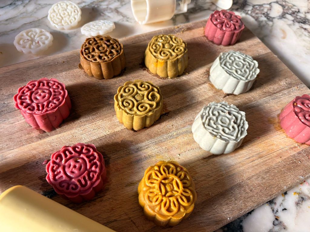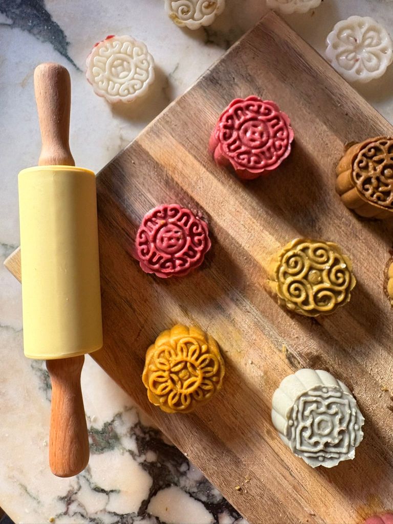 Whilst actual mooncakes are difficult to perfect, play dough ones are perfect for little chefs. I bought a cheap mooncake mould online – just pop a ball of play dough in and press! If you don’t have any play dough, here is the recipe I use to create my own.